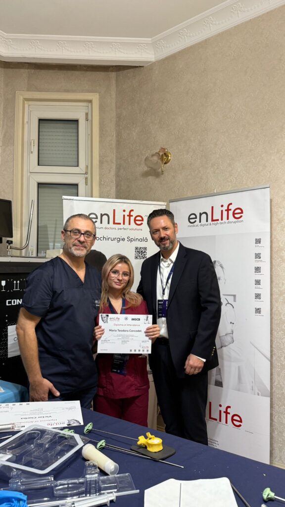 Workshopul din cadrul congresului, realizat în colaborare cu Enlife și dl. Alin Ladaru, a oferit studenților acces la instrumente și simulatoare reale folosite în tratamentul fracturii vertebrale.